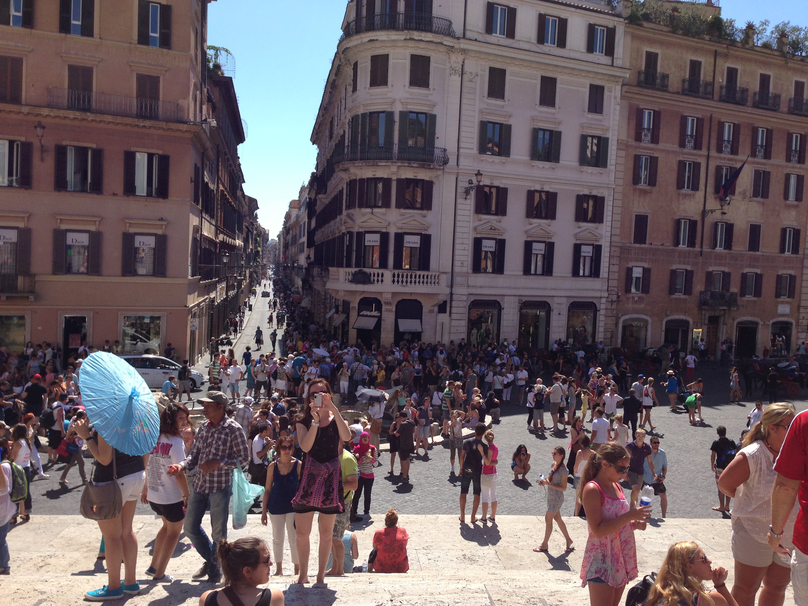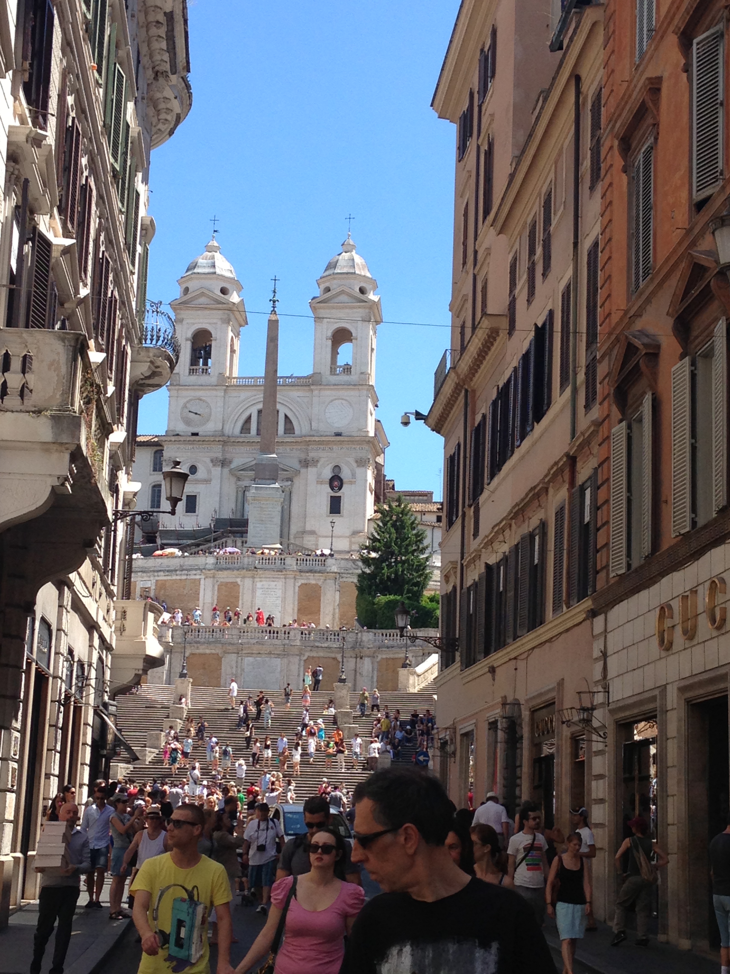 Ünlü markaların bulunduğu cadde, hemen merdivenlerin karşısında zaten. Buradan hemen ünlü Antico Caffe Greco’ yu buluyor ve soluklanıyoruz.