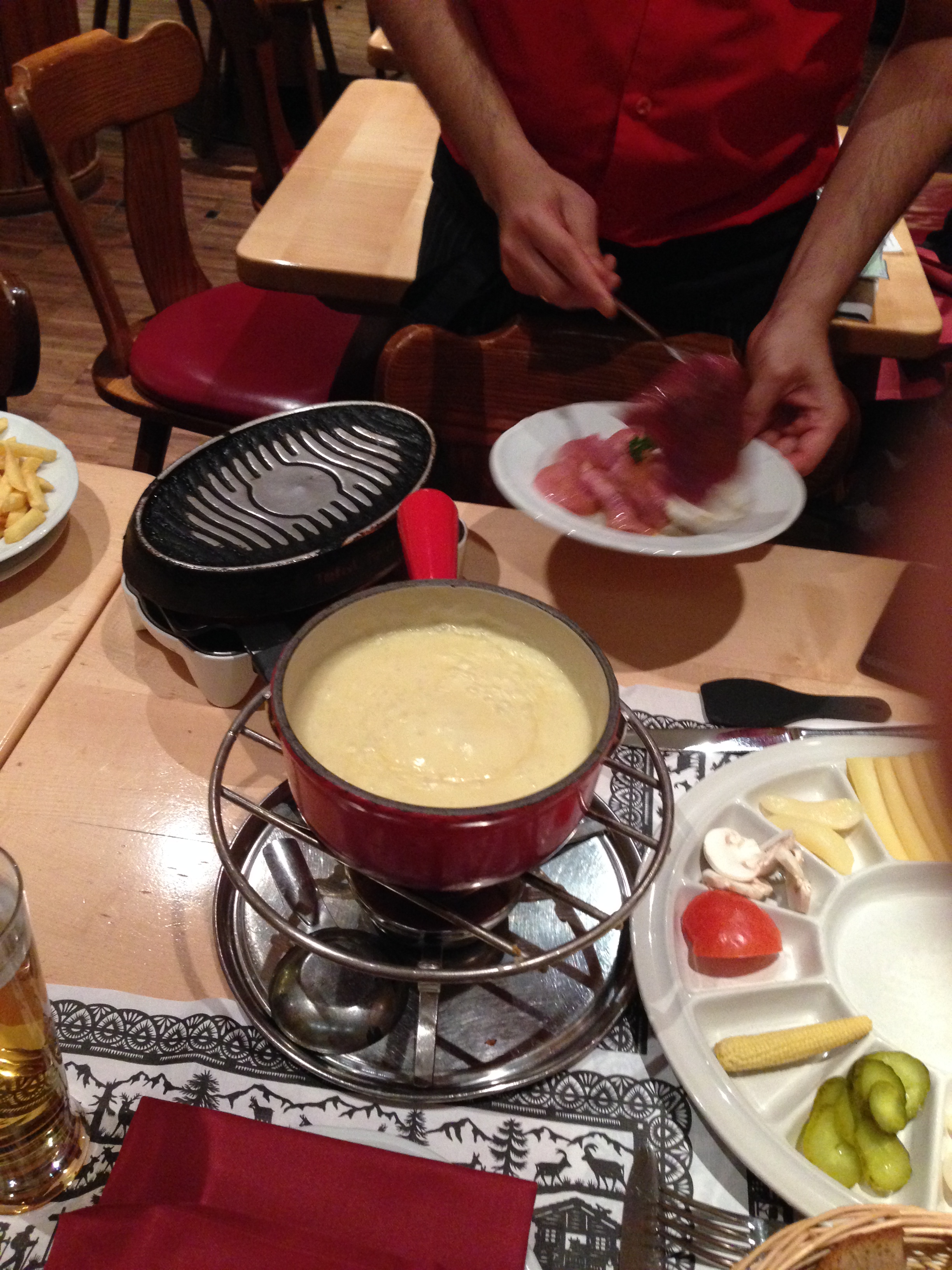 20.00 – 23.00 : Akşam yemeğimizi Swiss Chuchi’de yiyoruz (Rosengasse 10, am Hirschenplatz) Nehrin sağ tarafında, Hotel Adler’in altındaki restaurant ve yenmesi gereken çoğu yerel yemek burada mevcuttur. Biz rachlette ve peynirli fondu yiyoruz. Rachlette aslında bir peynir çeşidi, burada özel bir düzenekle sunum yapılıyor, üstte et, tavuk pişerken, altta racklette peyniri eriyor. Getirilen küçük patateslere eriyen rachlette peynirini döküp, yanında yeni pişen et ile birlikte yiyorsunuz. Ama uyarmalıyız, peynirli fondu gerçekten çok ağır, akşam yemeği olarak sadece fondu yenmiyor, yenemiyor!