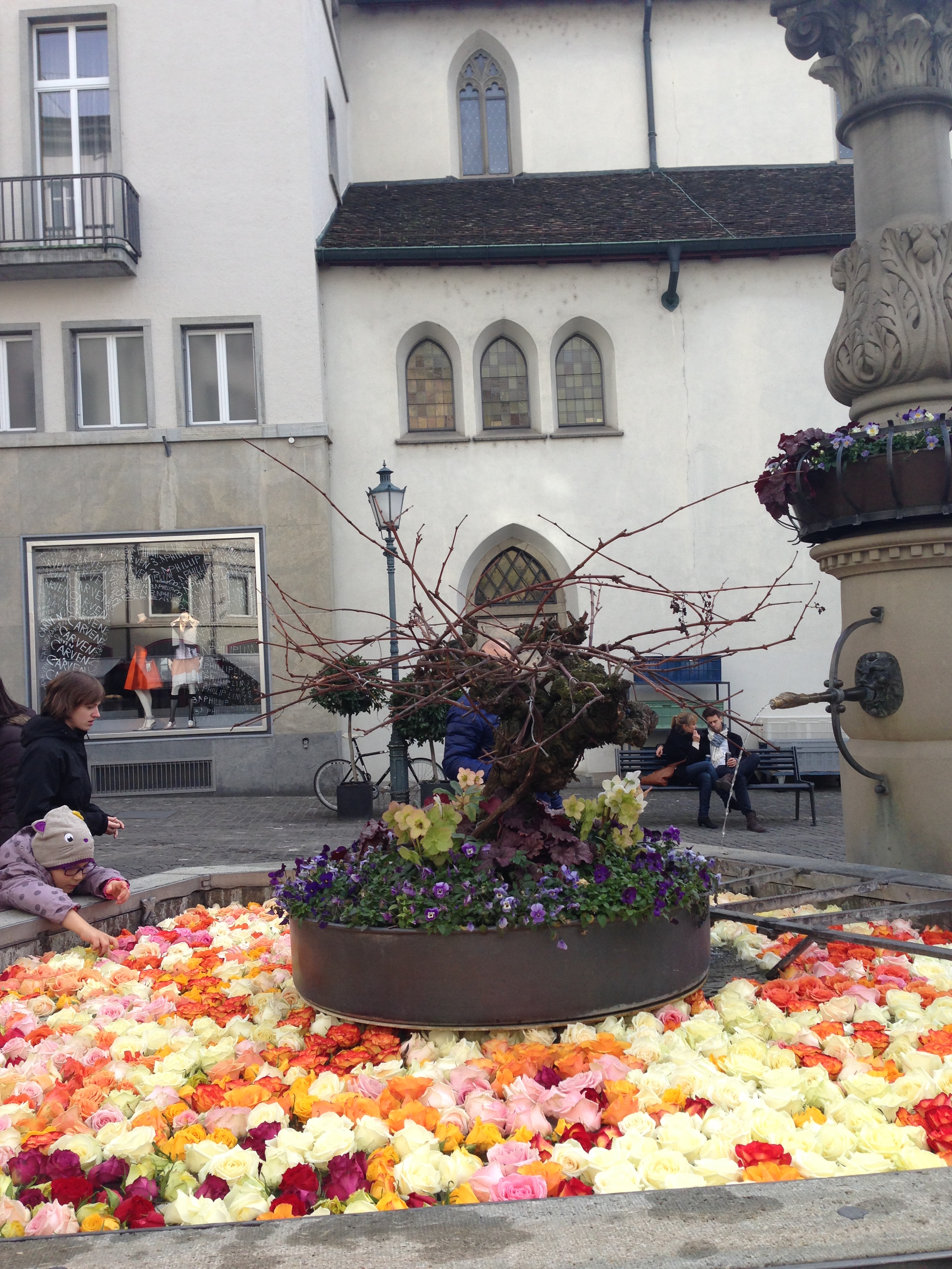 Gezimize Zurich’in en ünlü ve en büyük cadesi olan Bahnhofstrasse ile başlıyoruz. Yürürken ilk gördüğümüz Sprungli’den küçük bir kutu seçmece çikolata yaptırıyoruz ve mutlu mesut çikolatarımızla yürürken bu sefer yolun solunda Teuscher’i görüyoruz (Sprungli Zurich’in en ünlü çikolata ve makaroncusu, Teuscher ise çiçekçi – çikolatacı arası, içeri girince kendinizi çiçek bahçesinde hissettiren, çikolatalarının da şehirde ün yaptığı bir dükkan). Dönmeden mutlaka bu çikolataları da deneyeceğimizden emin, Bahnhofstrasse’yi başından sonuna vitrinlere baka baka bitiriyoruz.