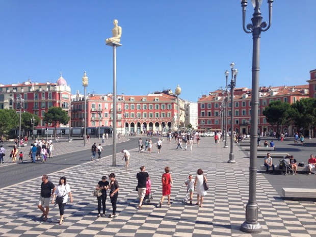 17.00: Le Parc du Chateau’den inip Cours Saleya tarafına, yürüyün, bu sokaktan yürüyerek (akşam da buraya geleceğinizi düşünerek) Place Massena’ya gidin. Bu geniş, ferah meydandaki ortasında Apollo heykelinin olduğu Fontaine du Soleil (Güneş Çeşmesi)’ni görüp, meydandaki olası gösteriler, konserlere ve tren yolundaki direklerin üstüne yerleştirilmiş heykellere (7 heykel 7 kıtayı temsil ediyormuş) bakınarak zaman geçirebilirsiniz.